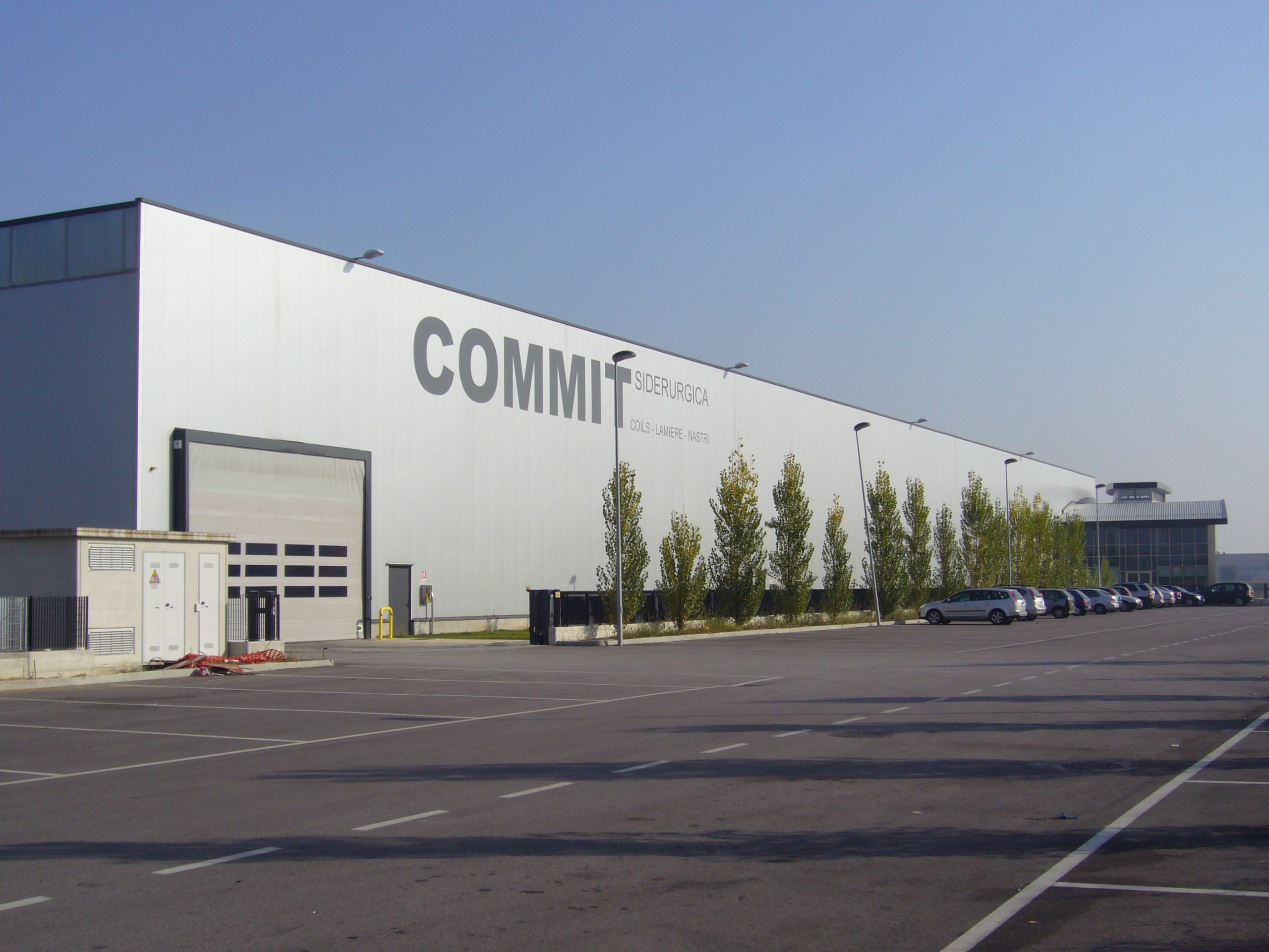 COMMIT SIDERURGICA S.p.A., azienda leader nella lavorazione e taglio delle lamiere: costruzione della nuova sede nel Comune di Veggiano (PD), con realizzazione di fosse di lavorazione profonde fino a 8 metri sotto il piano della pavimentazione e cunicoli per lo svolgimento delle bobine.