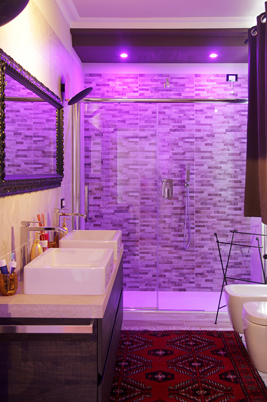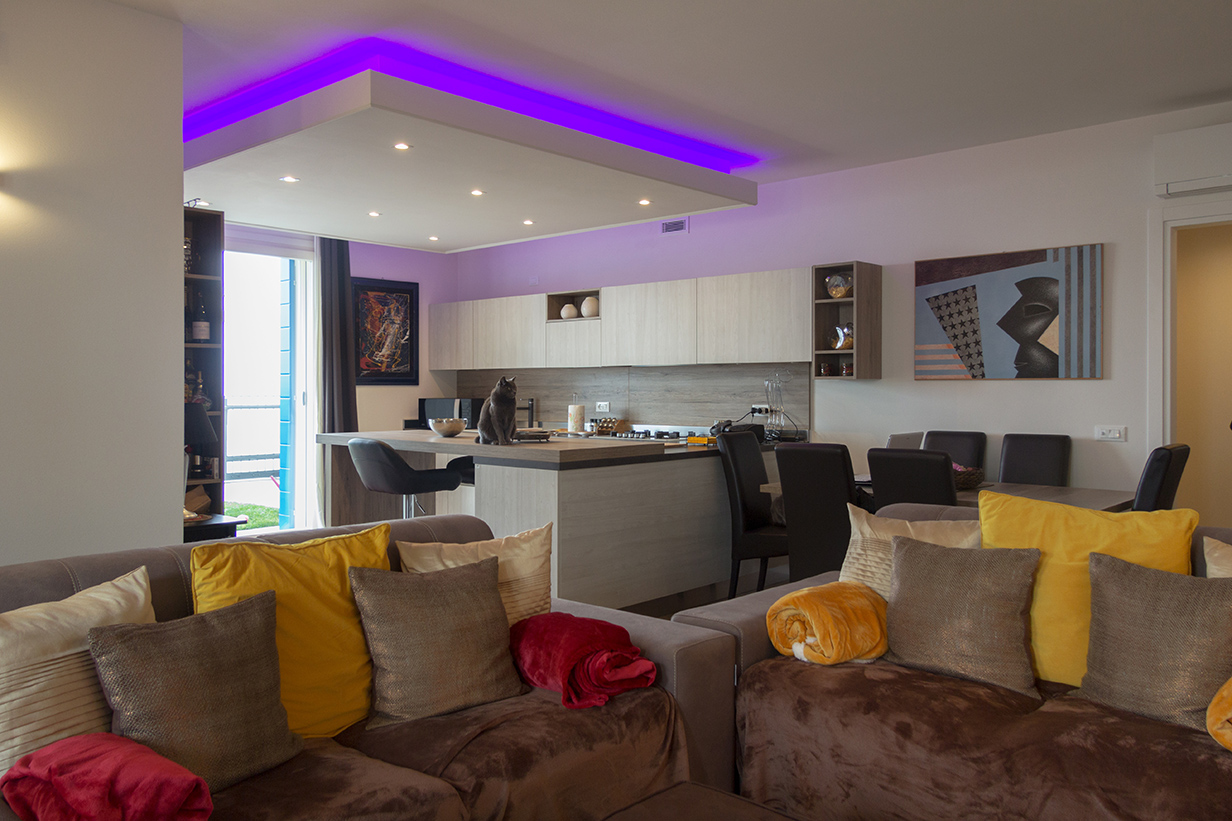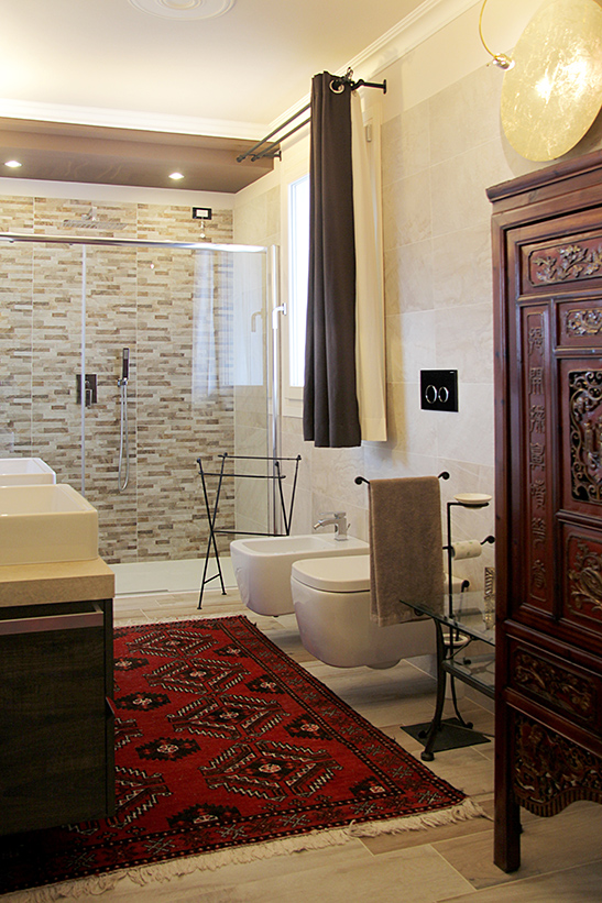 Il riscaldamento a pavimento è affidato ad un sistema ibrido, che combina la duttilità e l’affidabilità di una caldaia a condensazione con la modernità e il risparmio di una pompa di calore abbinata a solare termico e fotovoltaico.